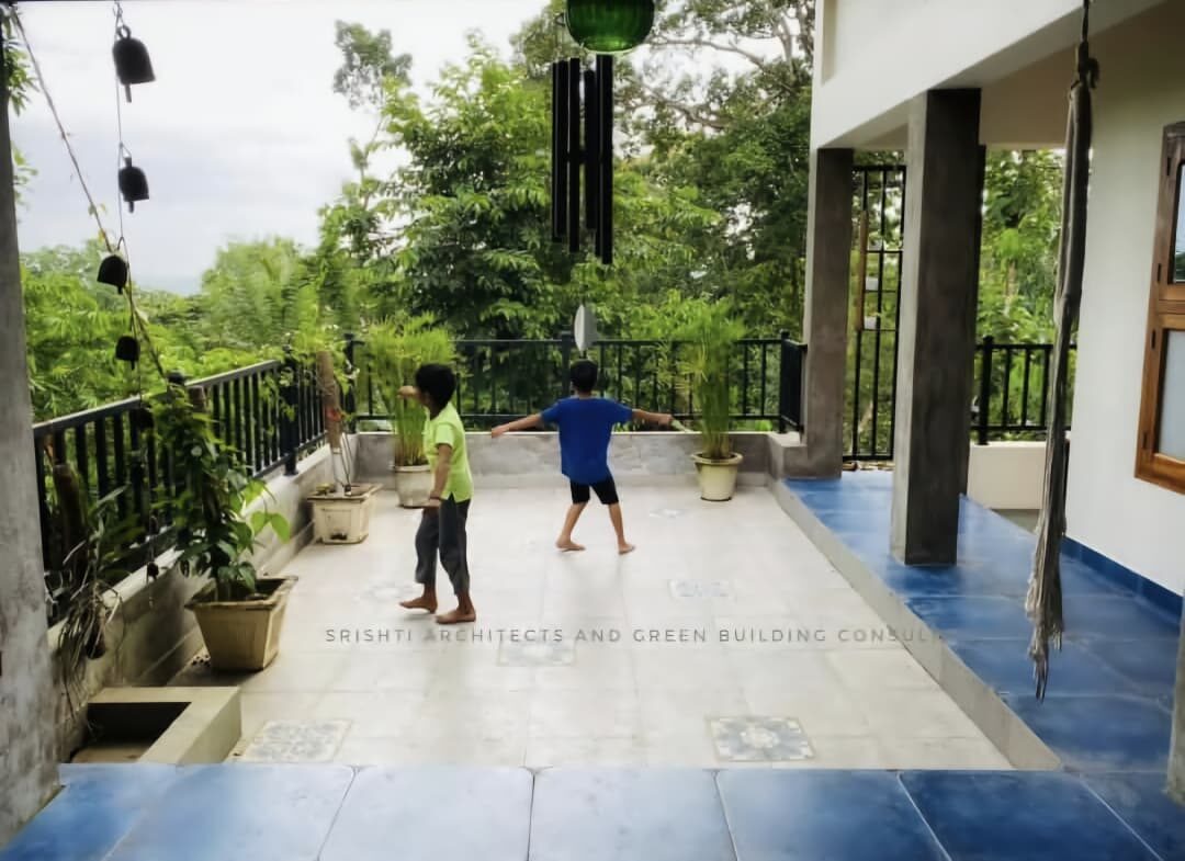 Large openings and an airy interior plan allow natural light and cross-ventilation to shape the atmosphere throughout the home. The extended balcony becomes a quiet refuge, framing uninterrupted views of the rolling Ponkunnam hills and strengthening the bond between the built form and the surrounding landscape. Subtle modern interventions enhance comfort without compromising the timeless character of the original residence.