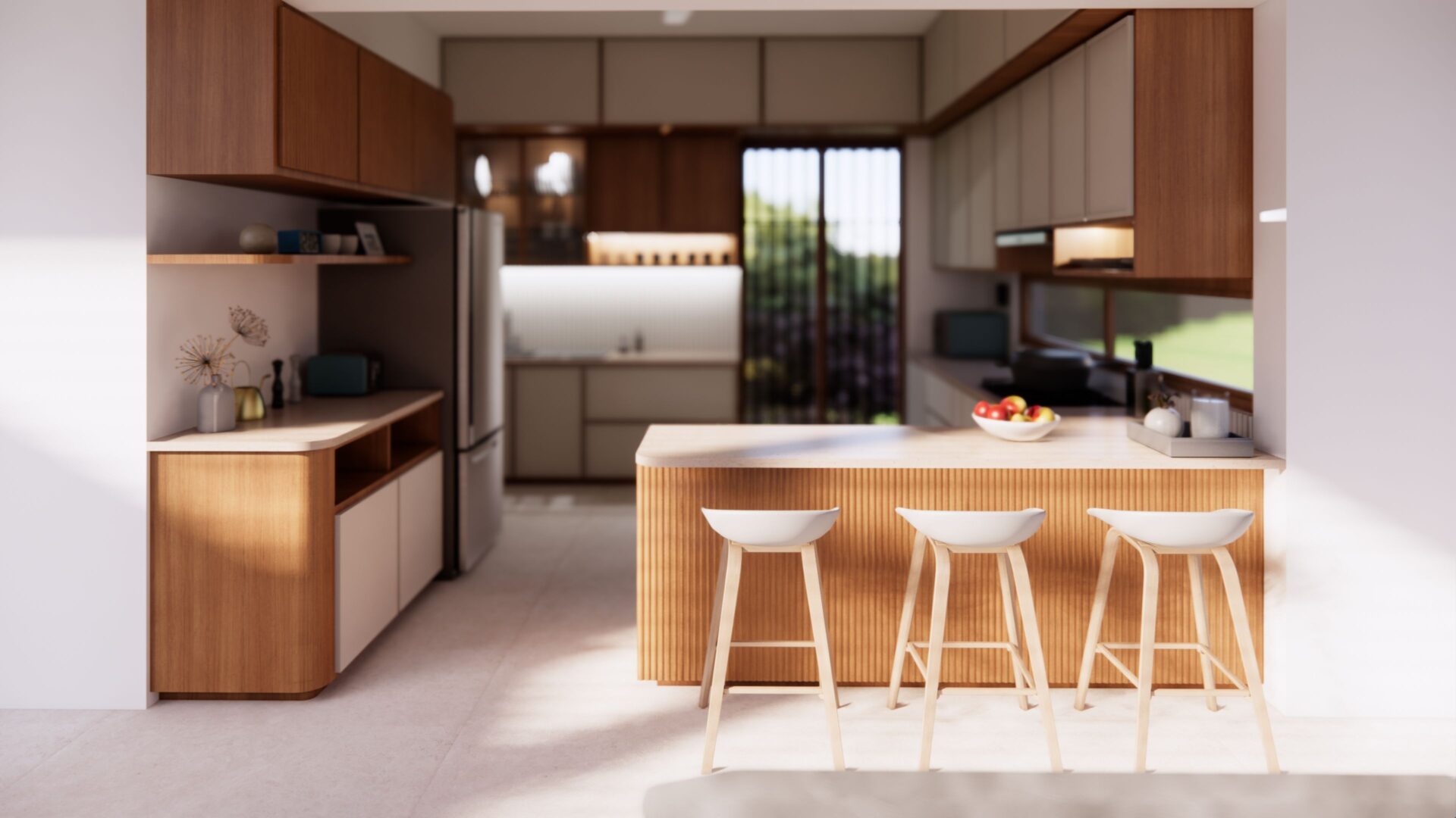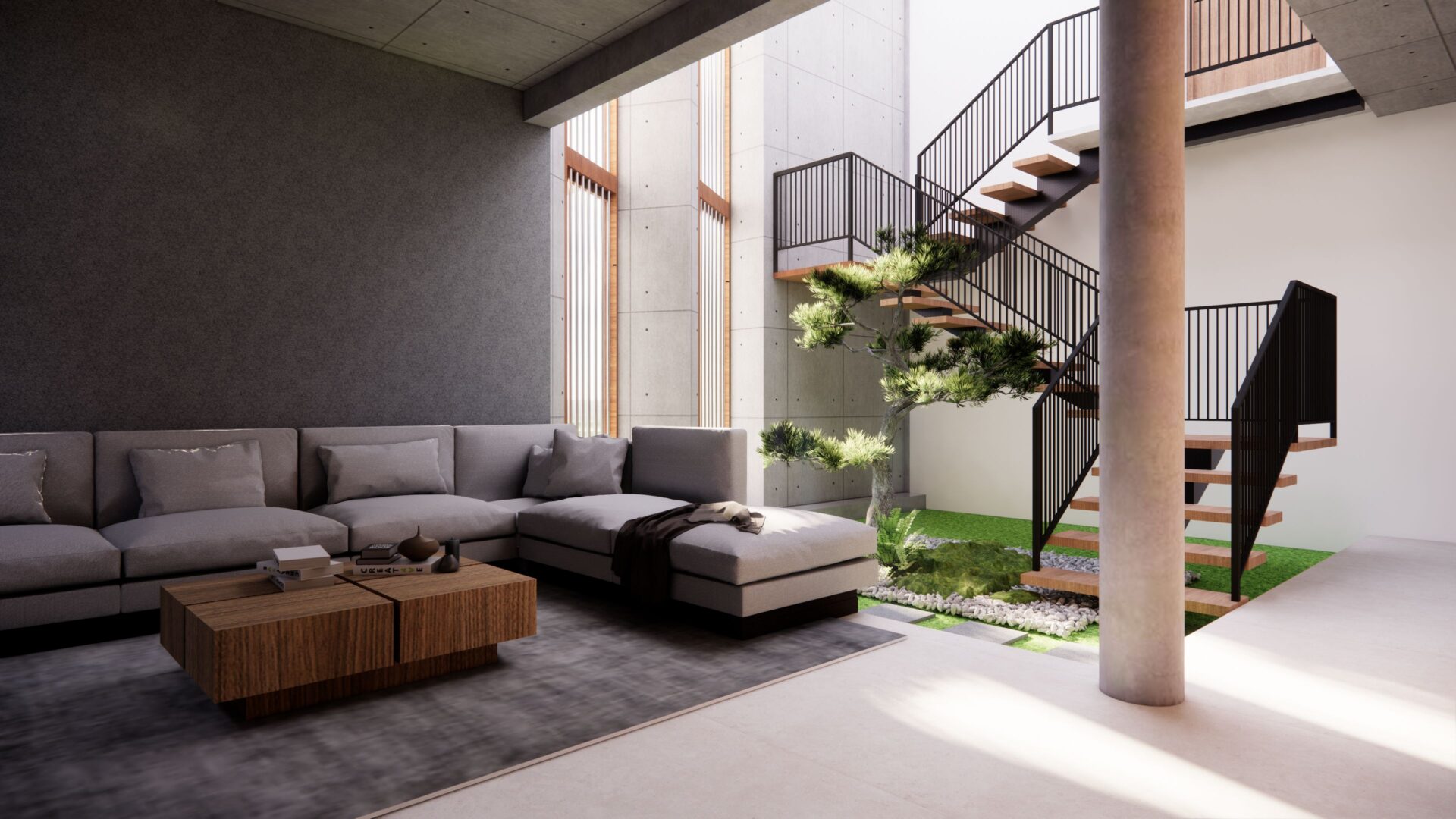 This residence is a minimalistic tropical residence that blends raw textures with earthy tones to create a calm, grounded spatial experience. Designed in harmony with the site’s natural contours, the home follows the land’s slopes and levels, resulting in an organic flow between spaces. With its understated elevation, muted material palette, and warm tropical light filtering through, the design achieves a refined balance between bold structural expression and serene, nature-connected living.