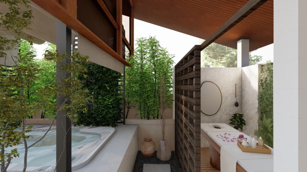 - Green open zones and shaded pathways